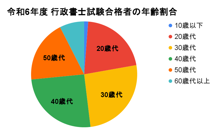 下記は令和6年度行政書士試験の合格者の年齢割合をグラフにしたものです。
